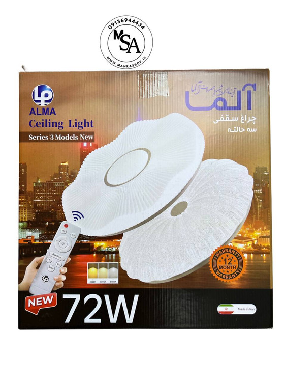 چراغ سقفی لوکس ۷۲ وات با قابلیت تغییر سه حالت نور و ریموت کنترل، ترکیبی کامل از زیبایی، عملکرد هوشمند و اطمینان است. این محصول با حذف محدودیتهای چراغهای معمولی، کنترل کامل روشنایی فضای زندگی شما را در دستان شما قرار میدهد.