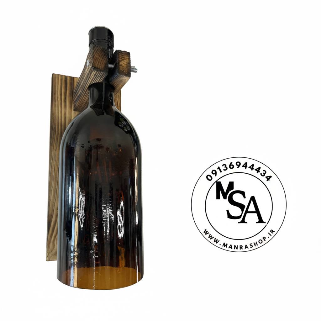 چراغ دیواری چوبی شیشهای مدل بطری