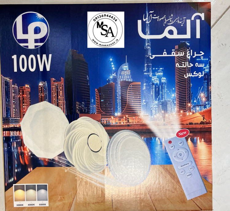 چراغ سقفی لوکس سه حالت نور طرح منحنی نامنظم 100 وات (ریموت دار) دارای ضمانت کد 804